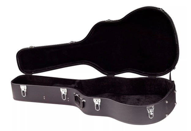 Case para guitarra tipo folk color negro marca Rockbag modelo RC10619B. Construido en su exterior con madera, posee interior de felpa, cajon multiuso, cerrajes de aluminio, alta resistencia para otorgar un gran cuidado del instrumento.
