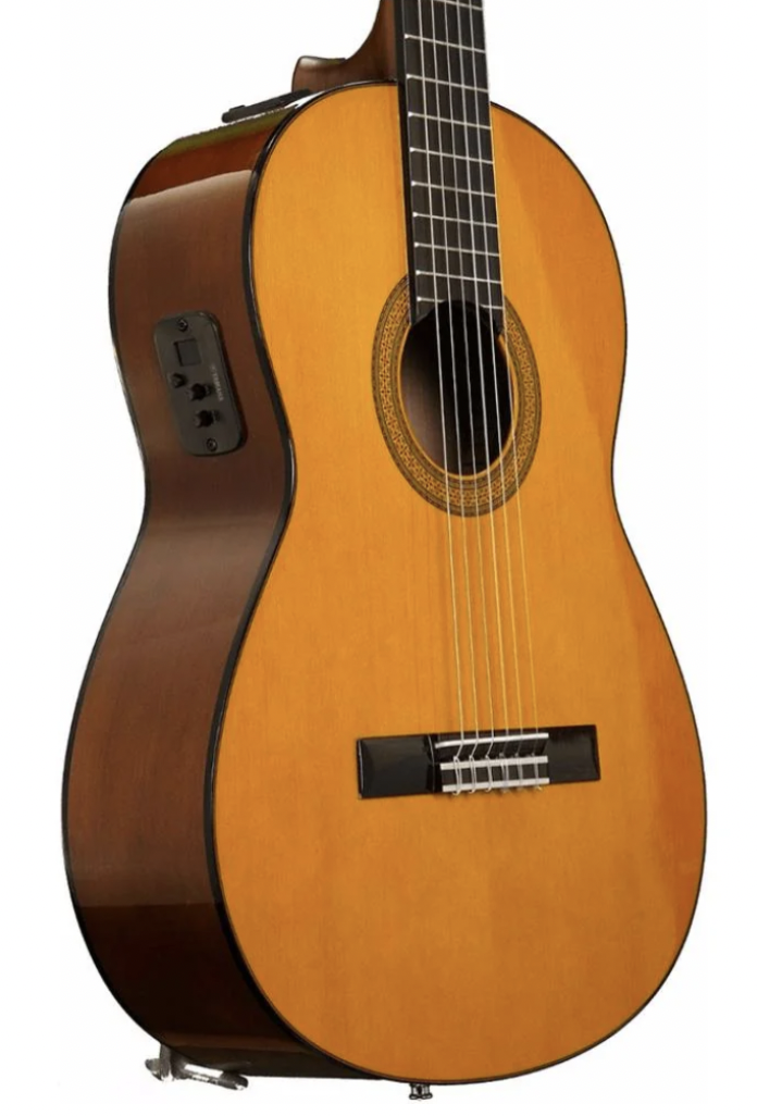 Guitarra Electroacústica de cuerdas de nylon, con tapa de abeto, aros y fondo de Meranti, mástil Nato y diapasón y puente de palisandro, color Natural.