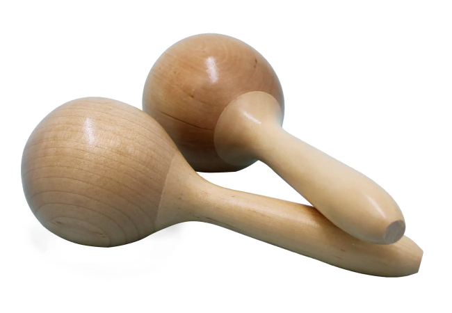 Maracas de madera, desarrolla el ritmo y la percepción auditiva, también sirven para la práctica del instrumento permite ejercitar la coordinación en grupo.