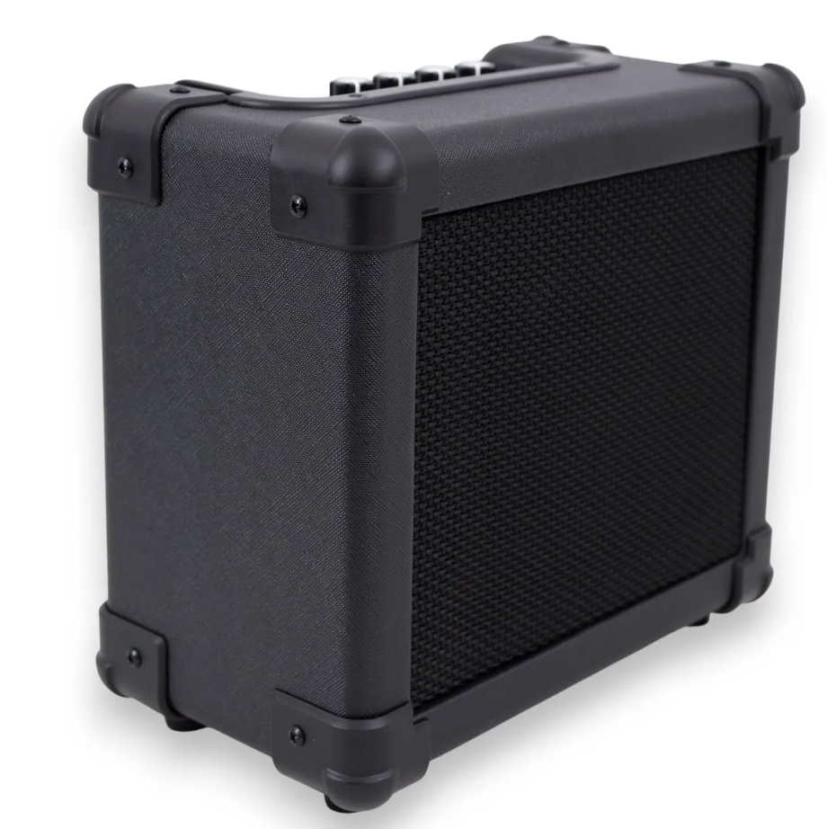 El amplificador de 10W incluido complementa perfectamente el set, proporcionando una potencia ideal para ensayar en casa o practicar con acompañamiento. Su diseño compacto facilita el transporte y almacenamiento, manteniendo una calidad de sonido clara y definida.