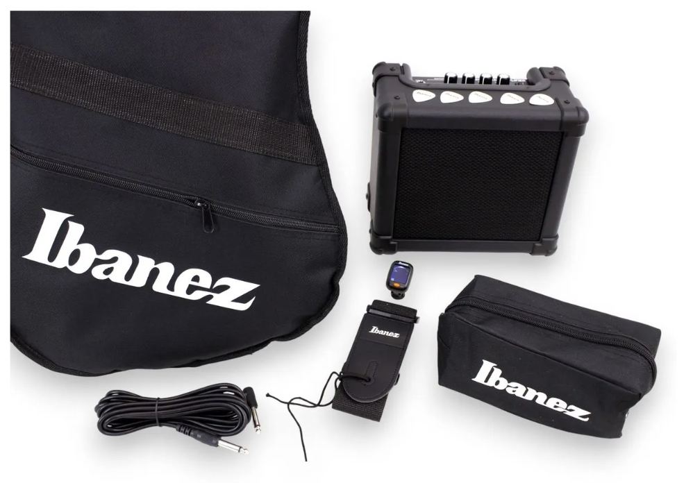 El Ibanez IJRX20 Jumpstart Set es la opción perfecta para quienes desean iniciarse en el mundo de la guitarra eléctrica con un equipo de calidad y todo lo necesario para empezar a tocar desde el primer día. Este completo paquete incluye una guitarra eléctrica Ibanez de 6 cuerdas, un amplificador de 10 watts, correa, funda, afinador y uñetas, ofreciendo una experiencia inmediata y completa tanto para principiantes como para quienes buscan un set de práctica confiable.
