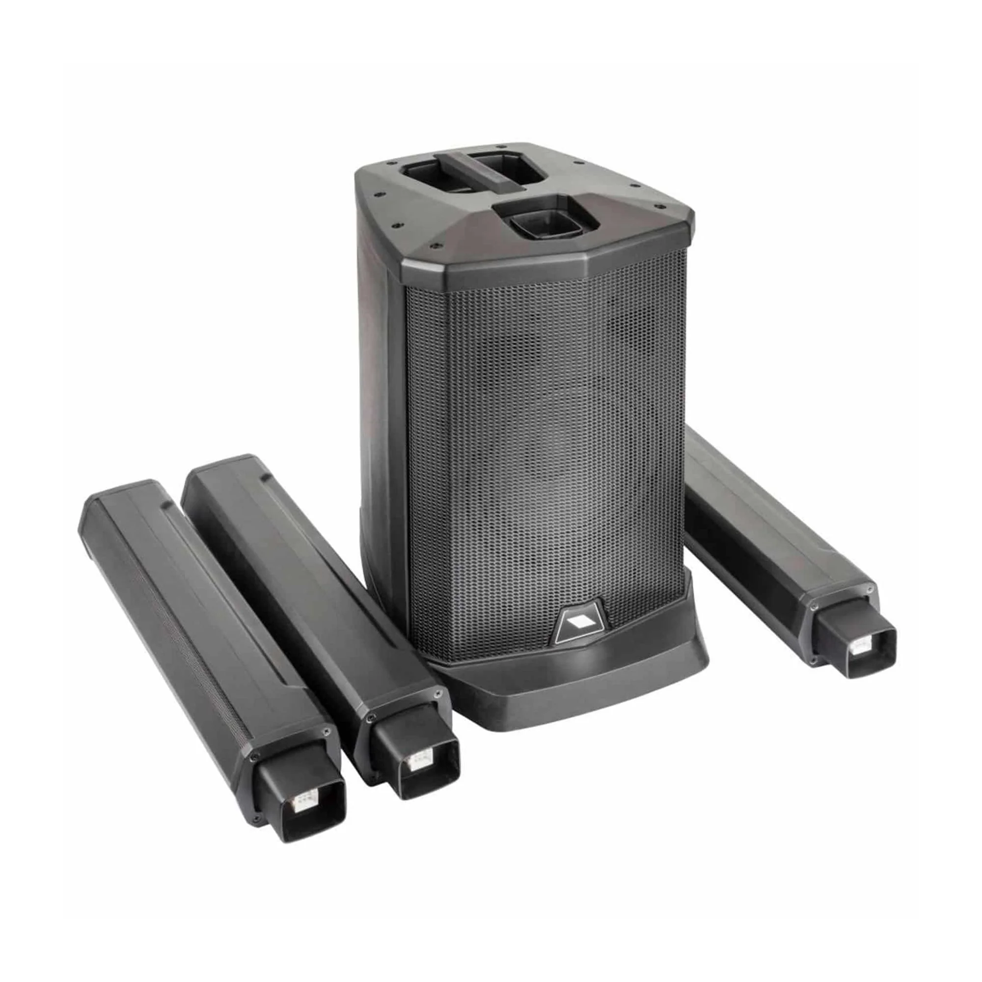 Potente  amplificador de potencia Clase D de 2 canales y 400 W. Sistema de columna portátil  con múltiples entradas y un versátil reproductor MP3 con  conectividad BLUETOOTH. Compuesto por una  columna con cuatro parlantes de rango completo de 2,5” de alta definición  y un potente  subwoofer de 8”.
